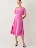Monsoon Candice Flower Embellished Midi Dress, Pink/Multi
