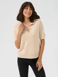 KAFFE Lizza Rib Knit Polo Neck Short Sleeve Jumper