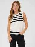KAFFE Lizza Stripe Sleeveless Jumper, Chalk/Black Deep