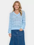 Saint Tropez Juna Lace V-Neck Jumper, Blue