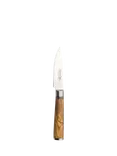 Katana Saya Damascus Steel Utility Kitchen Knife with Olive Handle & Leather Sheath, 12cm