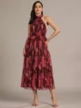 Lace & Beads Blossom Print Midi Skirt, Red Multi
