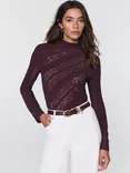 Mint Velvet Crinkle Lace Top, Red Burgundy