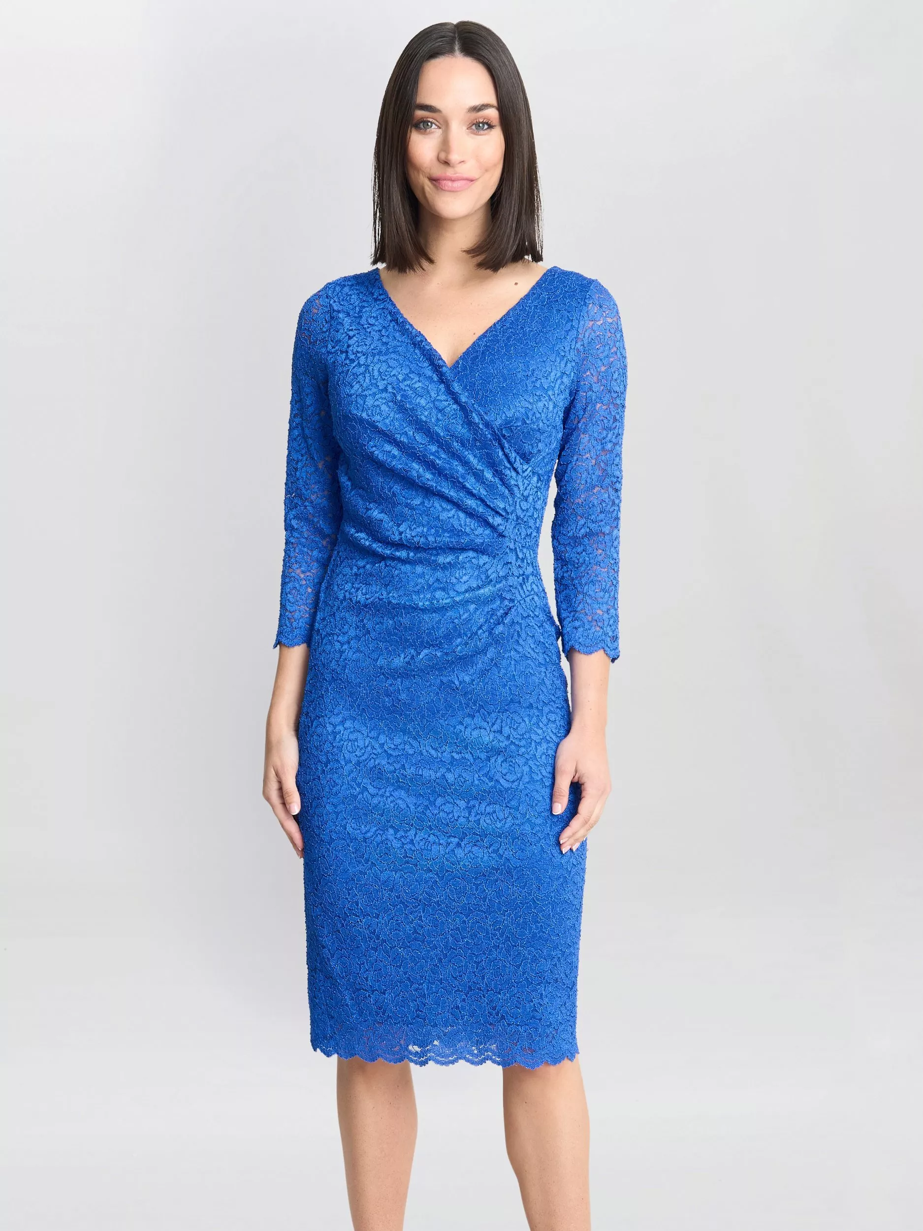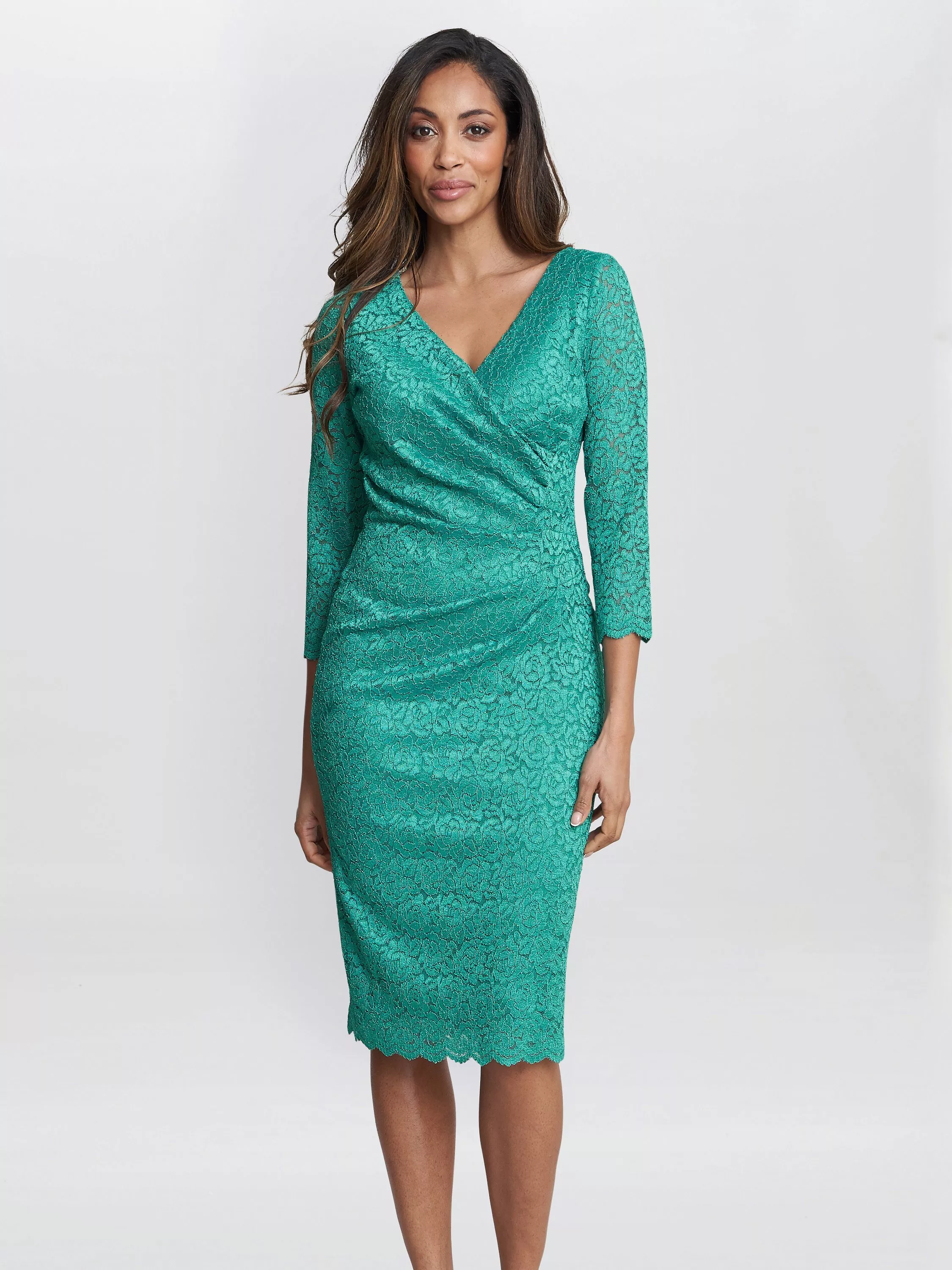 Gina Bacconi Melody Lace Wrap Dress, Turquoise