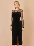 Yumi Velvet Sheer Sleeve Midi Dress, Black