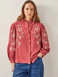 Monsoon Bridget Embroidered Frill Neck Blouse, Burgundy