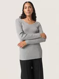 Soaked In Luxury Sanja Wide V-Neck Jumper, Porpoise Melange