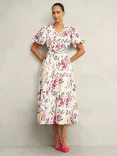 Taylor Floral Linen Blend Dress, Ivory/Multi