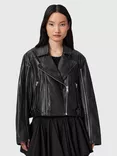 AllSaints Masone Zip Sleeve Leather Biker Jacket, Black