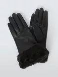 John Lewis Faux Fur Cuff Leather Mittens, Black