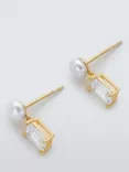 Freshwater Pearl and Baguette Cubic Zirconia Drop Earrings, Gold