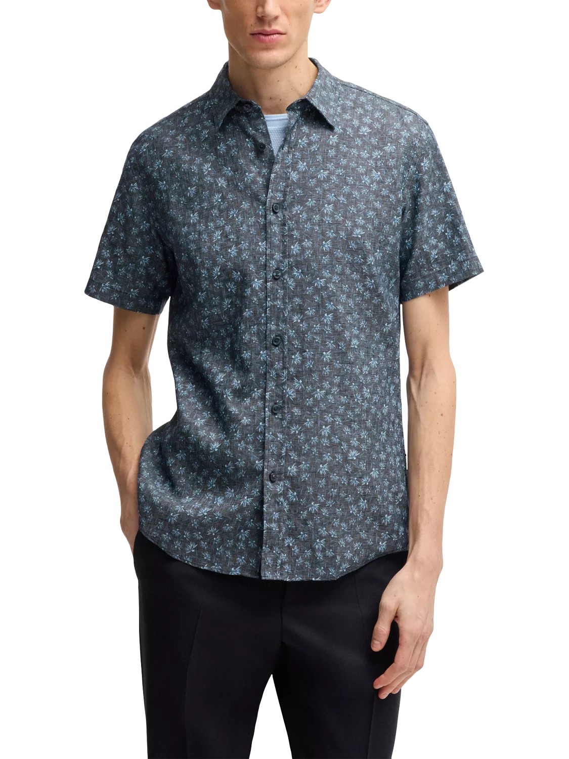 HUGO BOSS BOSS Linen Blend Slim Fit Floral Shirt