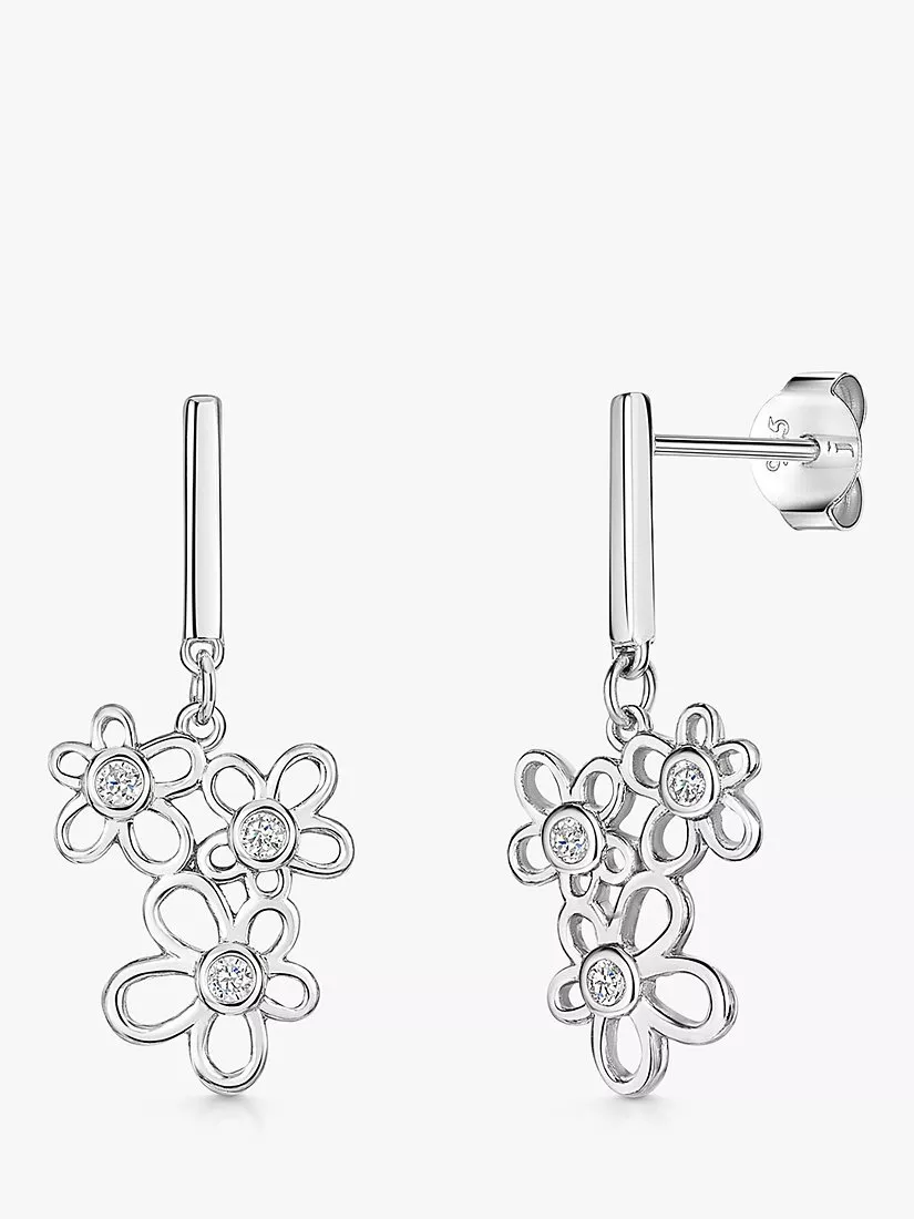 Jools by Jenny Brown Cubic Zirconia Triple Flower Cluster Drop Earrings
