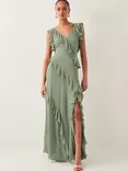 Monsoon Romy Ruffle Maxi Dress, Mid Green