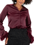 Lovedrobe Feather Cuff Satin Shirt, Black, Black