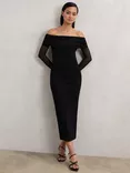 Angelica Bandeau Neck Long Sleeve Midi Dress, Black