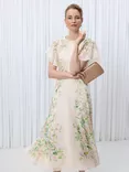 Hobbs Kim Floral Crew Neck Short Sleeved Silk Midi Dress