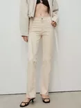 Mango Sienna Flared Cropped Jeans, Light Beige