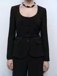 Mango Sake Scoop Neck Blazer, Dark Brown