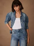 Mint Velvet Waist Detail Denim Jacket, Blue