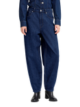 Mint Velvet Puff Sleeve Denim Jumpsuit, Blue Navy