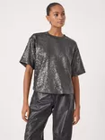 HUSH Matte Sequin T-Shirt, Gunmetal Grey