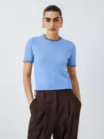 Marella Orlanda Contrast Trim Wool Rich Short Sleeve Jumper, Light Blue