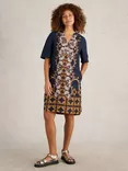 White Stuff June Linen Floral Tunic Mini Dress, Navy/Multi