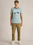 White Stuff Cotton Blend Slim Fit Abstract Waves Shirt, Blue