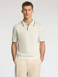 Selected Cotton & Linen Blend Regular Fit Polo Shirt, Egret Sky Captain, Egret Sky Captain