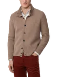 Hackett London Merino Wool Long Sleeved Cardigan, Putty Beige, Putty Beige