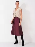 Crew Clothing Satin Midi Slip Skirt, Red Wine