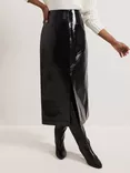 Curve Seam Detail Faux Leather Midi Skirt, Black