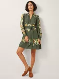 Monsoon Jesse Floral Print Mini Dress, Khaki