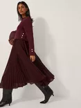 Monsoon Penny Long Sleeve Pleated Midi Dress, Aubergine, Aubergine