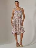 Stripe Scallop Detail Tiered Dress, Blue/White
