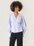 Soaked In Luxury Oriana Striped Cotton Wrap Blouse, White/Blue