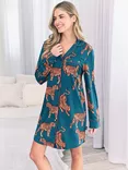 Tigers Print Nightshirt, Teal