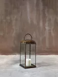 nkuku Kaso Brass Lantern Candle Holder, Antique Brass