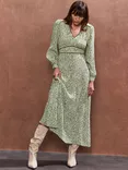 Ro&Zo Ditsy Print Waist Detail Dress, Green