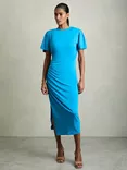 Reiss Tulia Ruched Midi Dress, Bright Blue