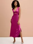 OMNES Marin Twist Front Satin Midi Dress