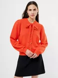 French Connection Varli Long Sleeve Tie Neck Cardigan, Flame Orange
