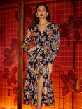 Yumi Floral Ruched Midi Dress, Black/Multi
