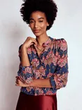 Alice Paisley Frill Front Top, Navy/Multi