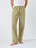 John Lewis Organic Cotton Stripe Lounge Trousers, Green Olive
