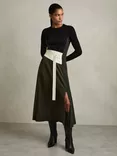 Reiss Emilina Colour Block Midi Dress, Khaki/Black