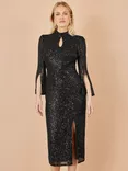 Yumi Sequin Fitted Midi Dress, Black