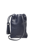 Aspinal of London Hudson Small Grain Milled Pebble Leather Drawstring Crossbody Bag, Navy
