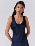 Ghost Palm Satin Midi Dress, Navy